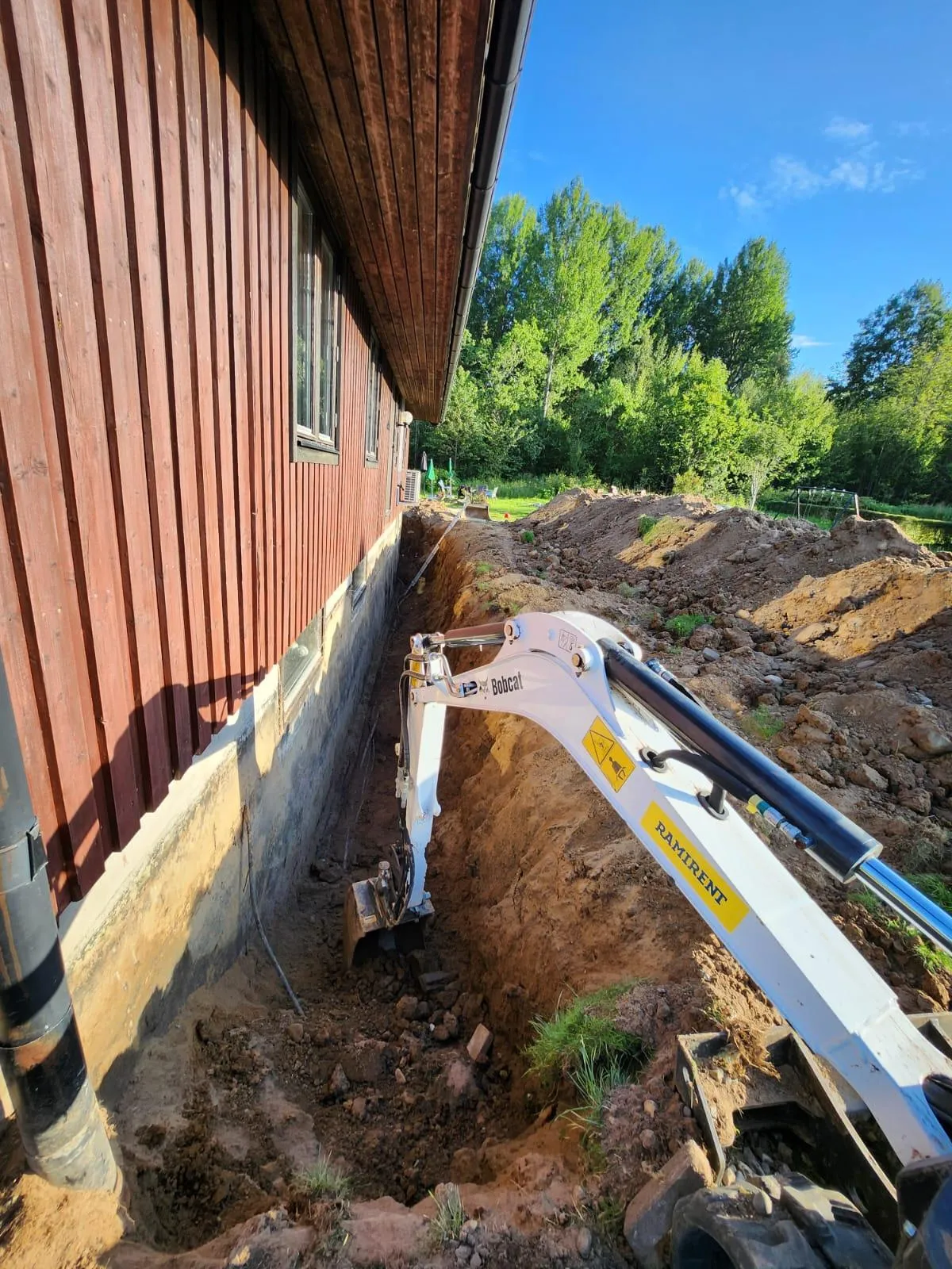 När vi tar oss an ett dräneringsprojekt börjar vi alltid med att besöka platsen och gå igenom dina behov och önskemål. Vi skapar en offert baserat på markförhållanden, husgrund och budget. När offerten är godkänd påbörjar vi arbetet – vi gräver runt husgrunden, lägger ny dränering och isolering vid behov, och återställer marken. Allt anpassas efter fastigheten och för att ge ett långvarigt skydd mot fukt.